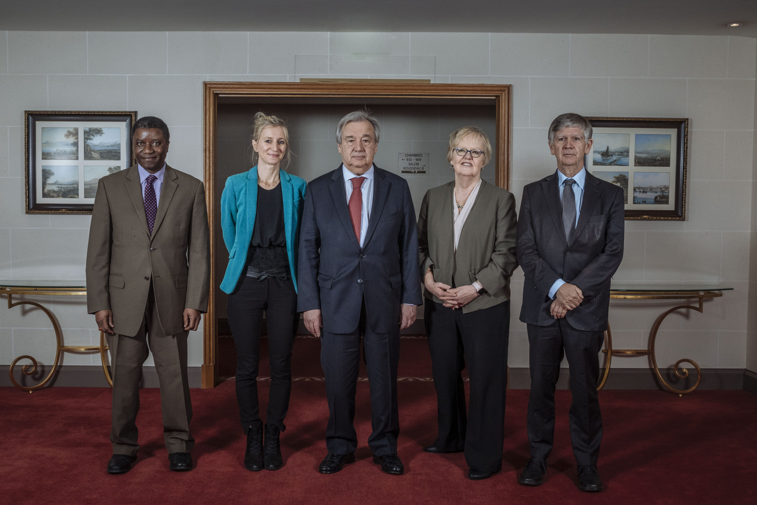 Professor Elizabeth Ferris with the UN Secretary-General and 3 other members of the Expert Advisory Group to the new UN High Level Panel on Internal Displacement.